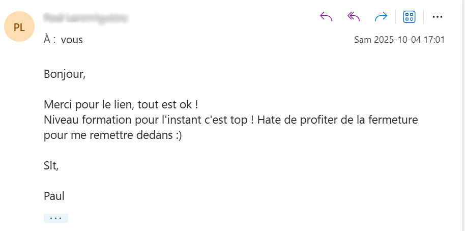 Après votre commande vous recevez un lien de connexion qui vous donne un accès illimité à la formation.